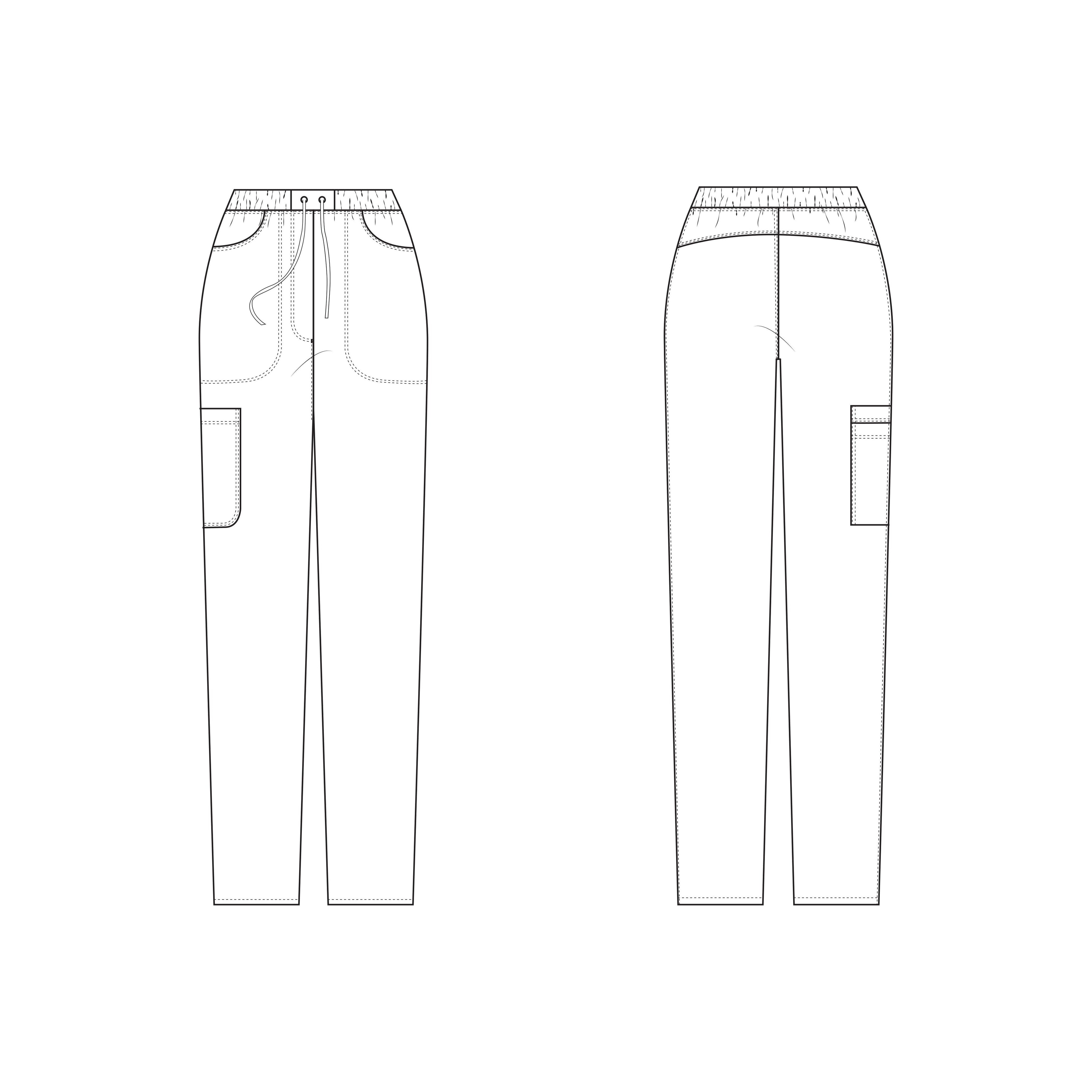 Tveir vasar eru á hliðinni og einn lærvasi. Með teygju í mitti og bandi. Mikið úrval af litum í boði.