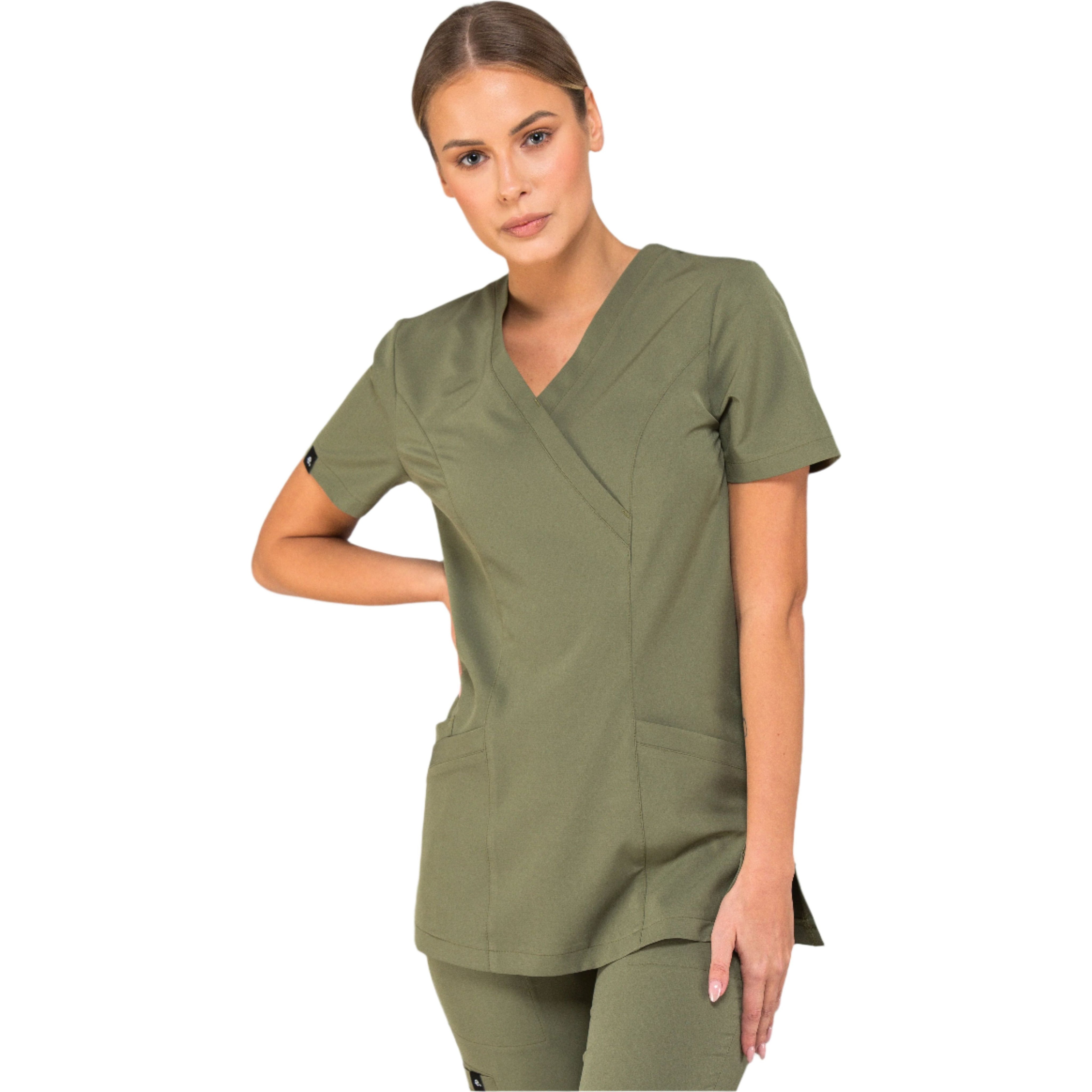Aðsniðinn bolur með tveimur stórum vösum og einum minni að framan.