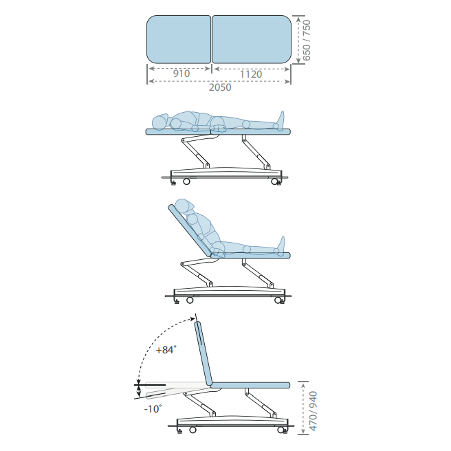 Tvískiptur skoðunarbekkur sem hentar mjög vel við almenna og sérhæfðari skoðun. Bekkurinn einkennist af einfaldri og góðri hönnun og býður uppá margar útfærslur.