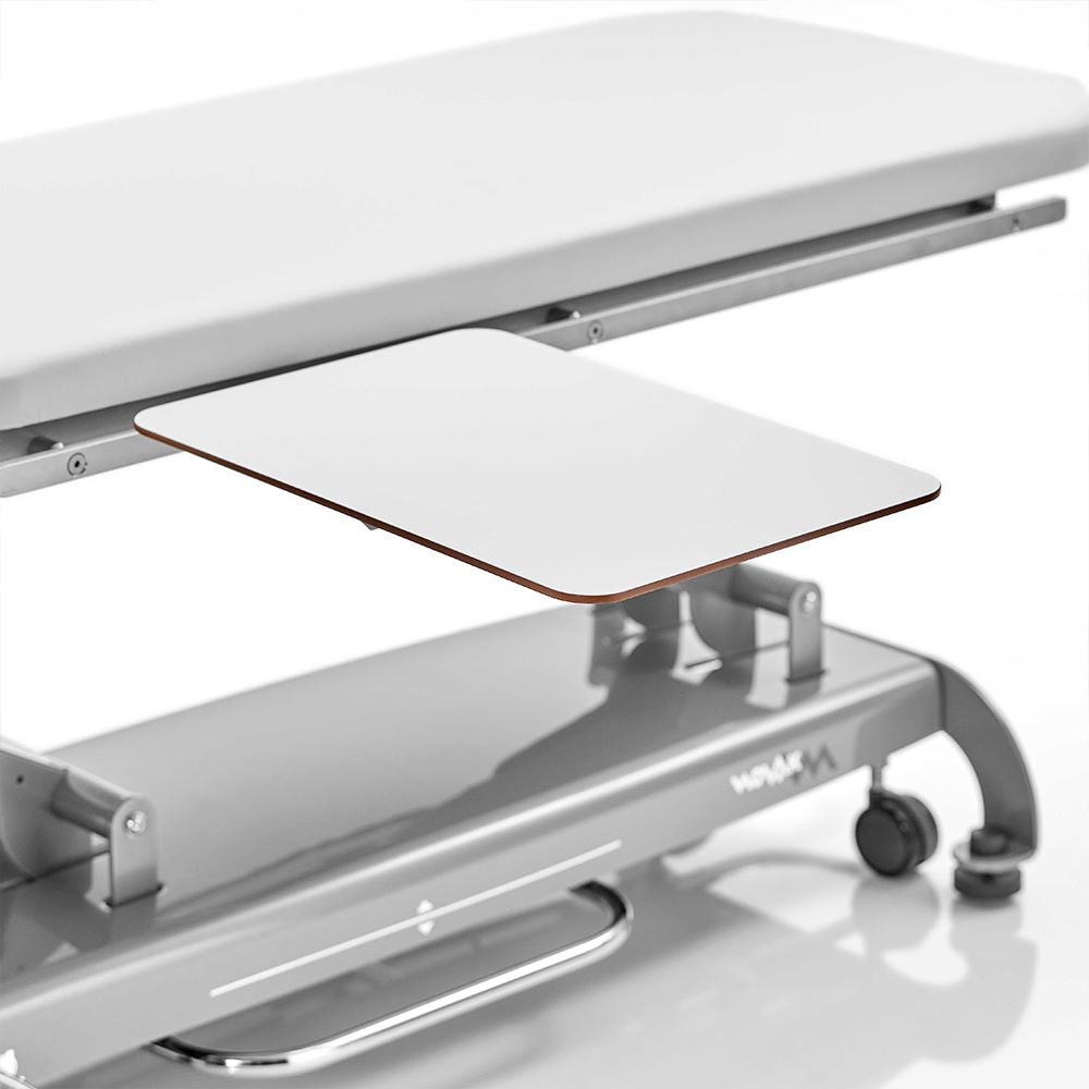 - Skoðunarbekkurinn er mjög stöðugur við notkun en auðvelt að færa hann til þar sem bekkurinn kemur á hjólum sem hægt er að nota þegar færa á bekkinn.