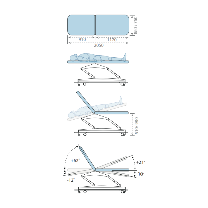 Tvískiptur rafdrifinn skoðunarbekkur sem hentar mjög vel við almenna og sérhæfðari skoðun. Bekkurinn einkennist af einfaldri og góðri hönnun og býður uppá margar útfærslur.