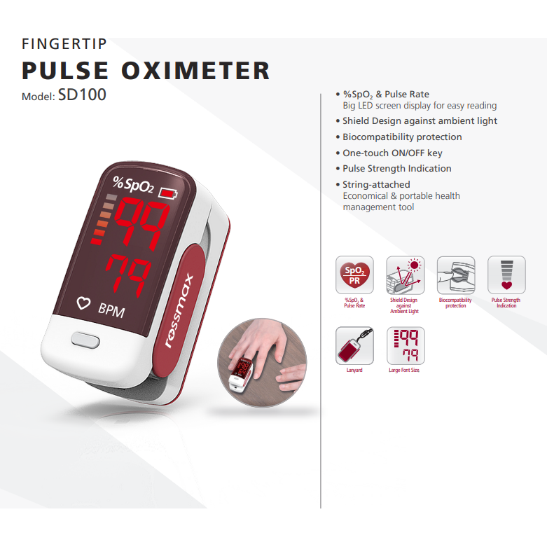 Einfaldur og áreiðanlegur súrefnismettunarmælir frá Rossmax. Mælir bæði súrefnismettun og púls.