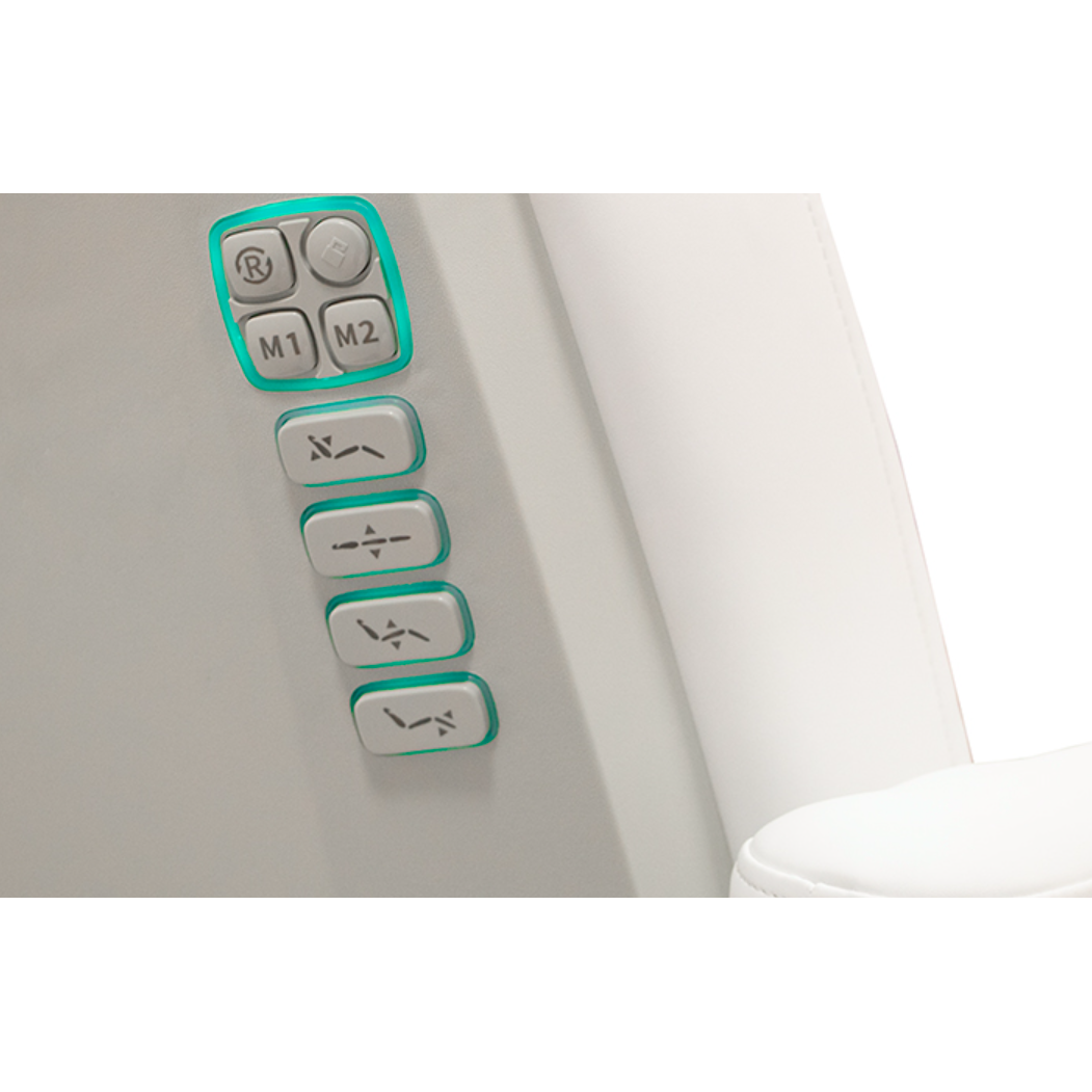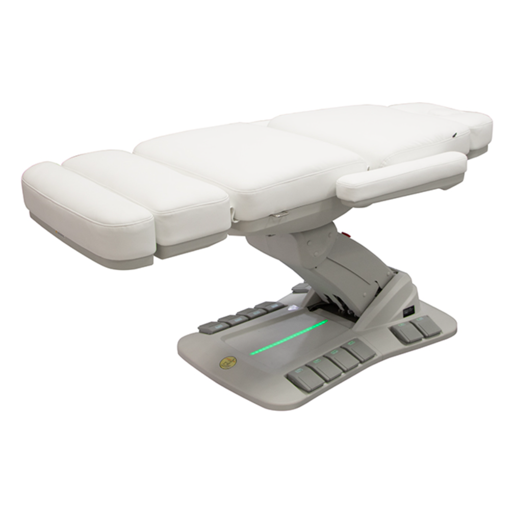Stöðugur og fallegur snyrtibekkur sem er sérstaklega hannaður til að hámarka vinnusvæðið með 240° snúning bekksins. Bekkurinn er með 4 mótora sem stjórna hæð, bakhalla, sætisstöðu og fótastuðning. Hægt að fá ýmsa aukahluti eins og hita í sætin, rúlluhaldara, hjól undir stólinn og handfjarstýringu.