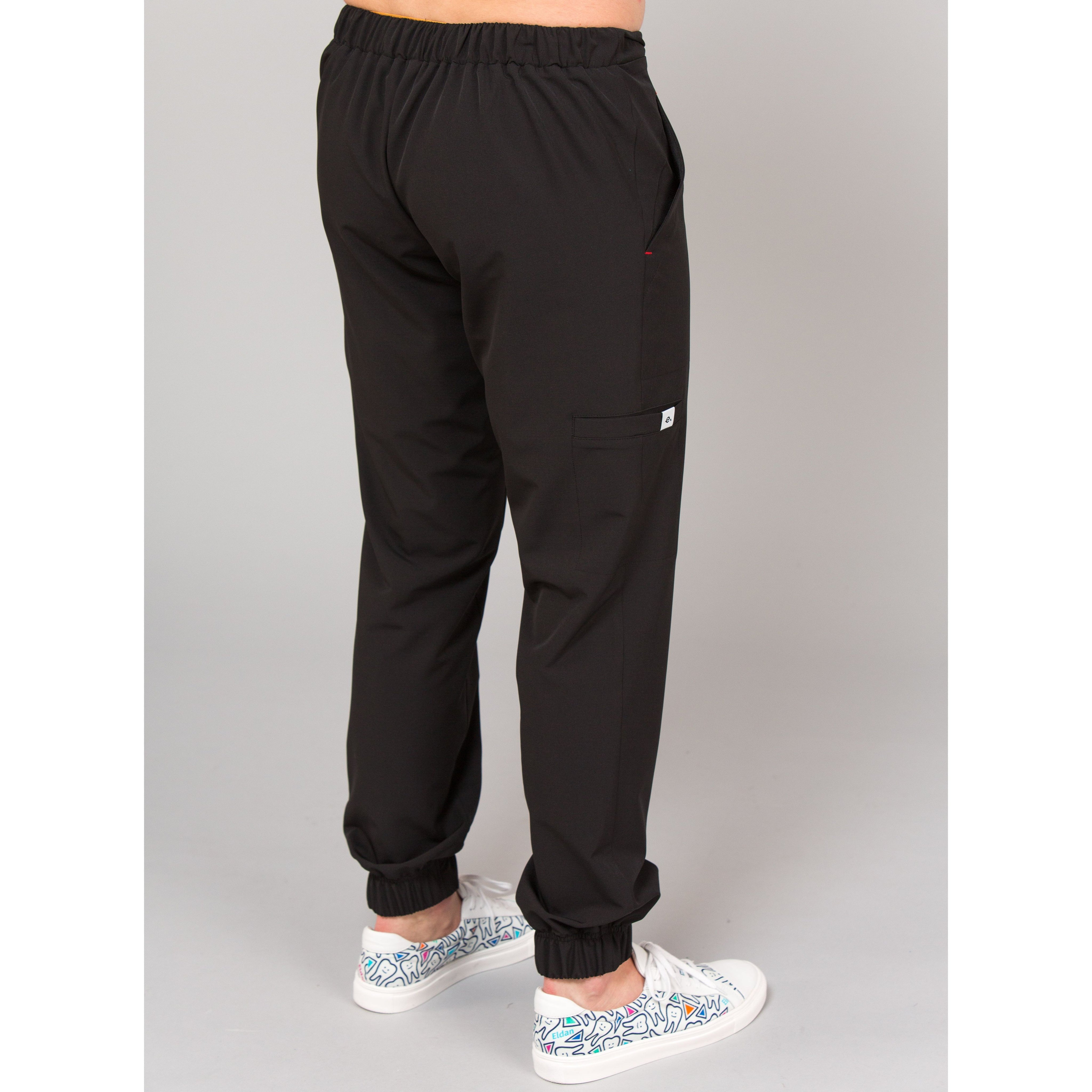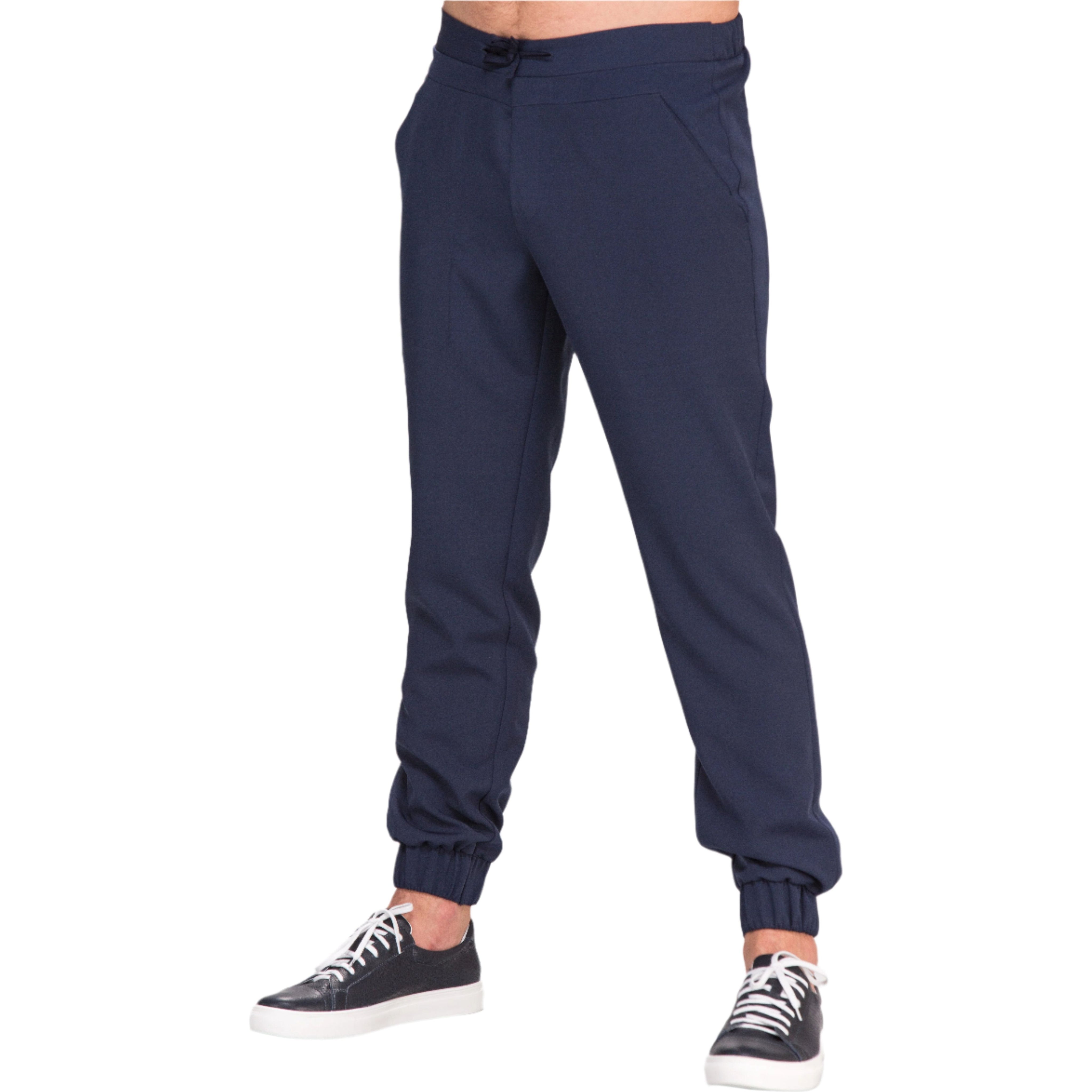 Finndu frelsi við hverja hreyfingu. Léttar buxur úr polyester og spandex sem andar vel. Í mittinu er teygja og mittisband, þær eru síðan teknar saman að neðan með teygju. Það eru tveir góðir vasar og einn lítill lærisvasi.